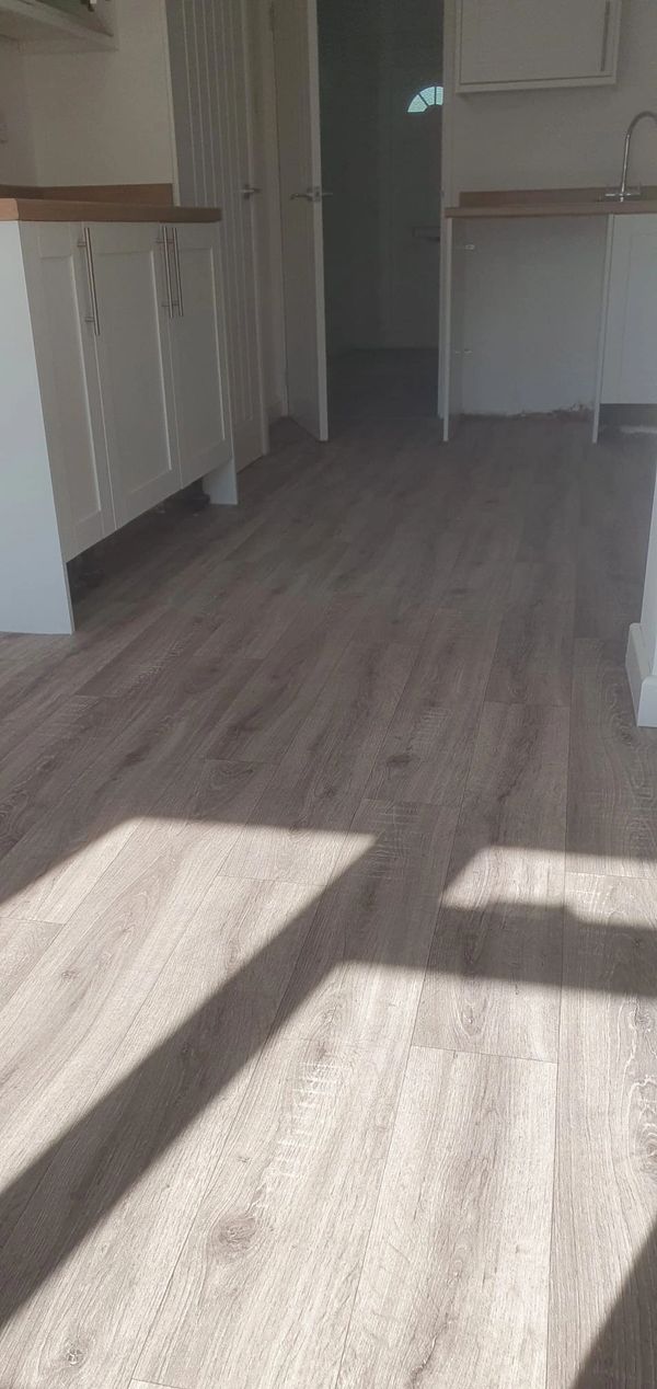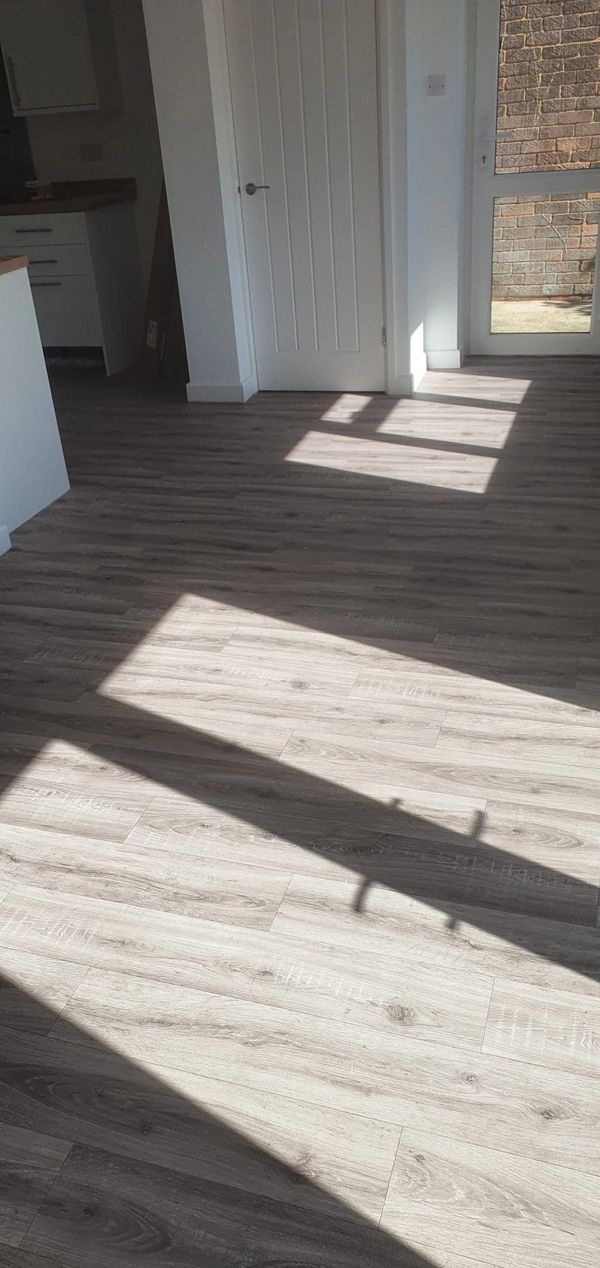 New vinyl flooring supplied and fitted in a new forest kitchen and large diner after the subfloor was prepped, primmed & levelled